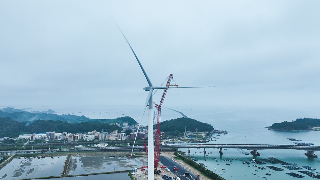 [新华网]我国企业自主研制的18兆瓦半直驱海上风电机组吊装成功